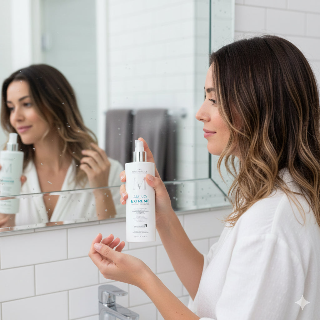 Amino Extreme is an advanced thermal protector designed to be applied before blow-drying, flat ironing, or curling, creating an intelligent barrier against high temperatures. Its formula is enriched with amino acids and precious oils that form a protective film around the hair strands, reducing frizz and preventing damage caused by heat styling tools. In other words, it not only protects the hair from dryers and straighteners but also treats it while protecting: the amino acids penetrate the hair fiber, strengthening its internal structure, while the special oils nourish and seal the cuticles.